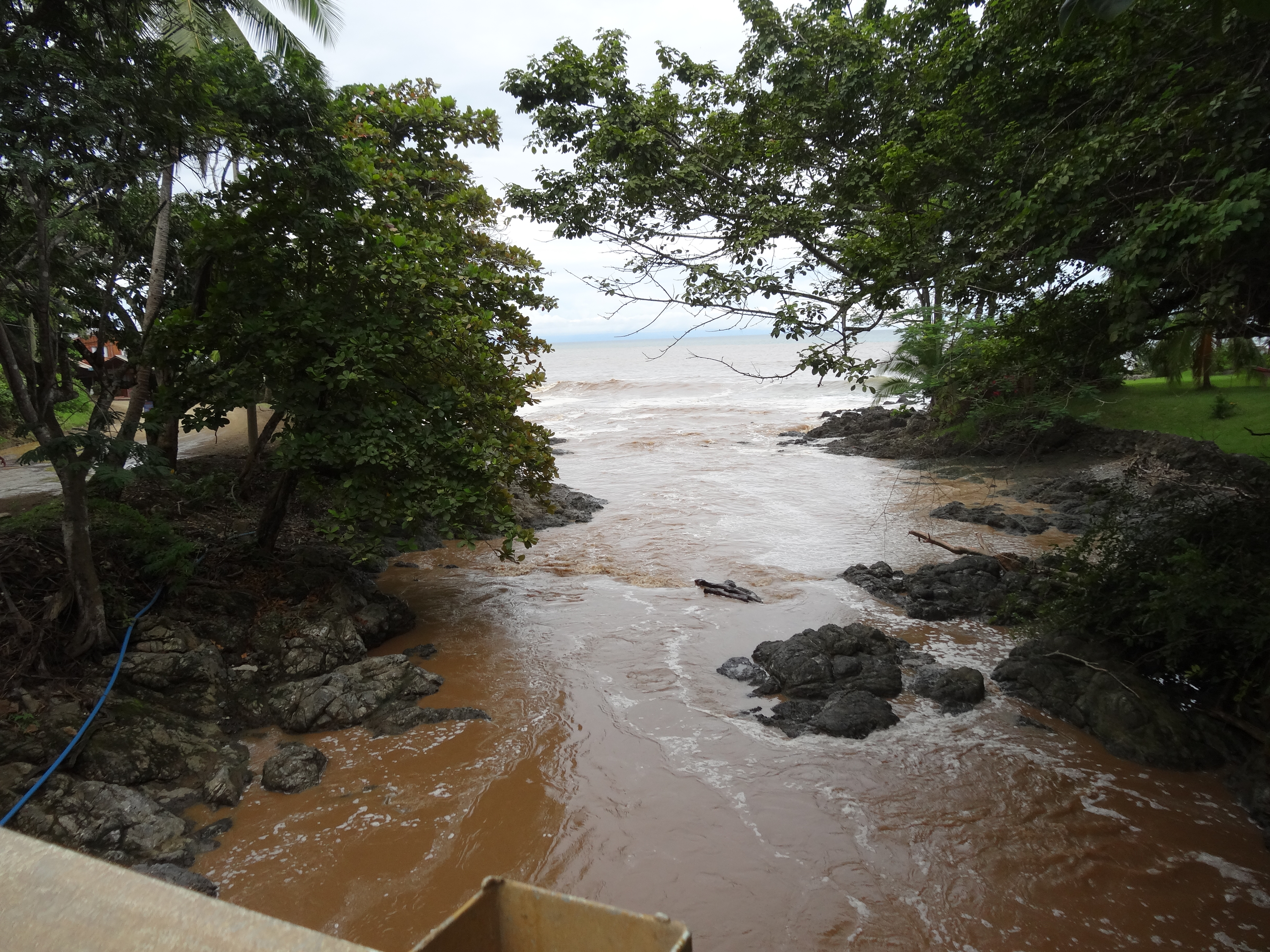 Published September 12, 2013 at 4896 × 3672 in Costa Rica Honeymoon Day 3 – It rains and rains! ← Previous Next → Muddy river leading out to the ocean on a rainy day.