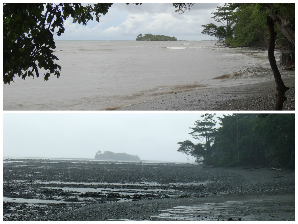 Published September 12, 2013 at 1024 × 768 in Costa Rica Honeymoon Day 3 – It rains and rains! ← Previous Next → Comparison of low and high tide at Casa Astrid. During low tide, that island could be walked to.