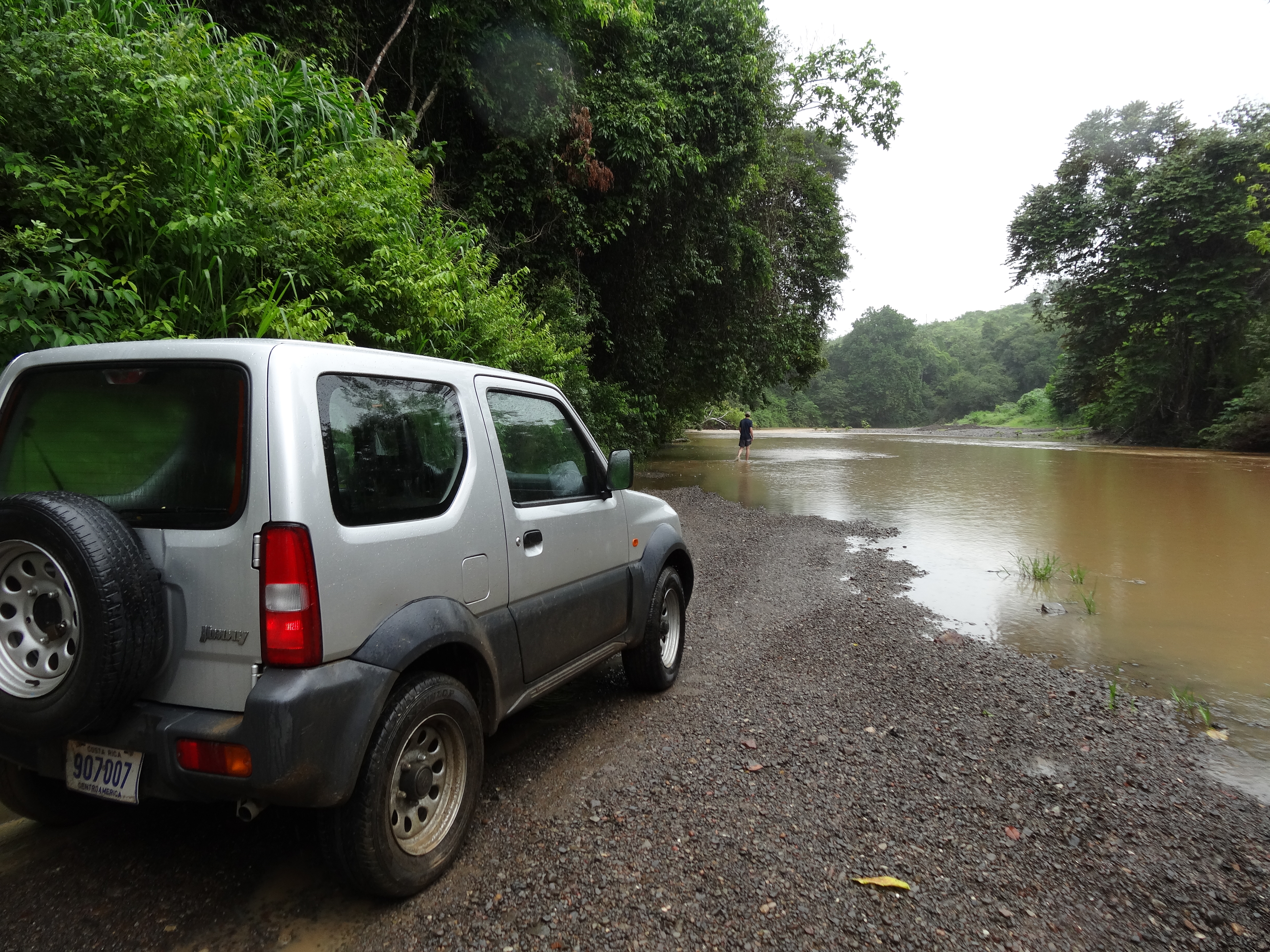 Published September 12, 2013 at 4896 × 3672 in Costa Rica Honeymoon Day 4 – Did I mention it was rainy season? ← Previous Next → Bryce treading the water of Rio Bongo to check how deep it was.
