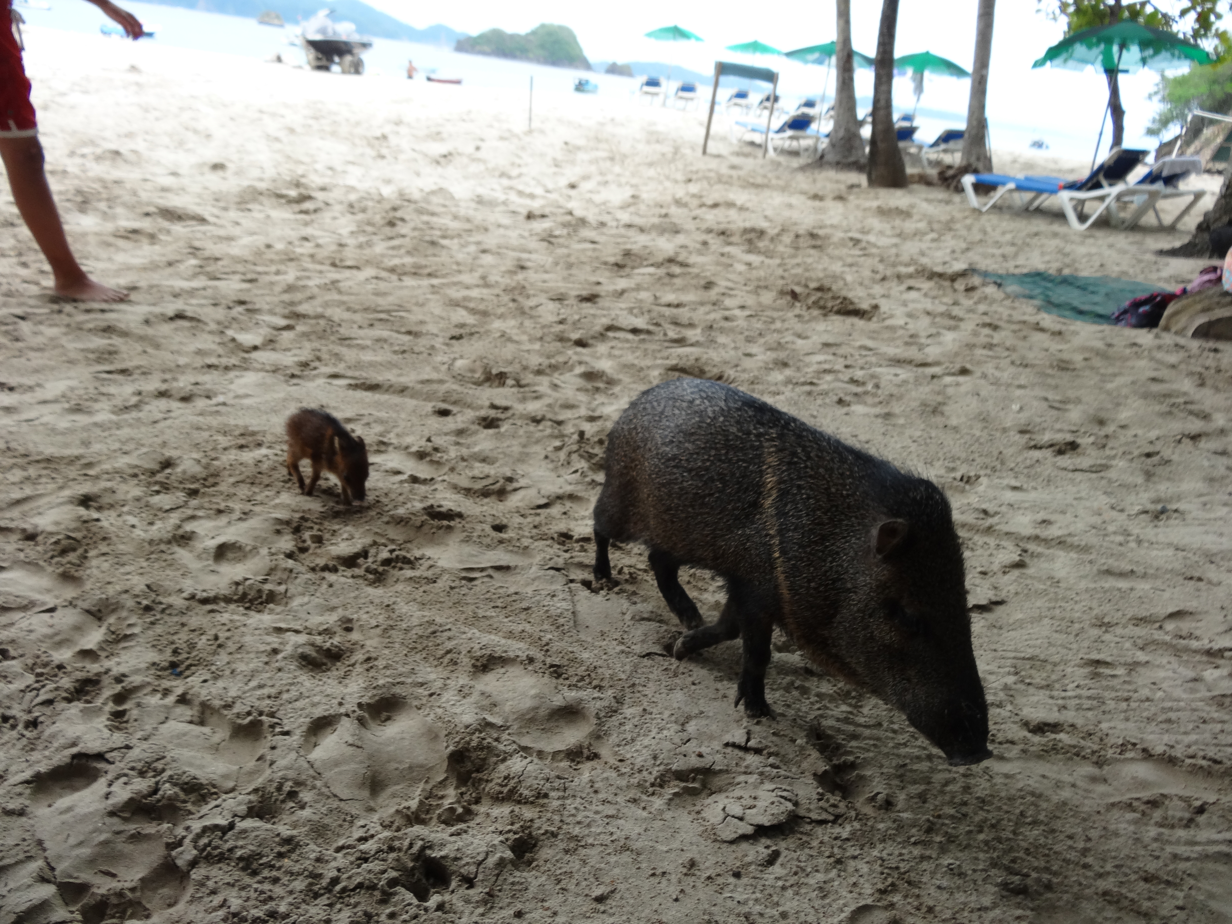 Published September 12, 2013 at 4896 × 3672 in Costa Rica Honeymoon Day 5 – Sun & snorkeling! ← Previous Next → The not-so-wild, seemingly domesticated wild boar and its little piglet, making the rounds visiting people on Tortuga Island.