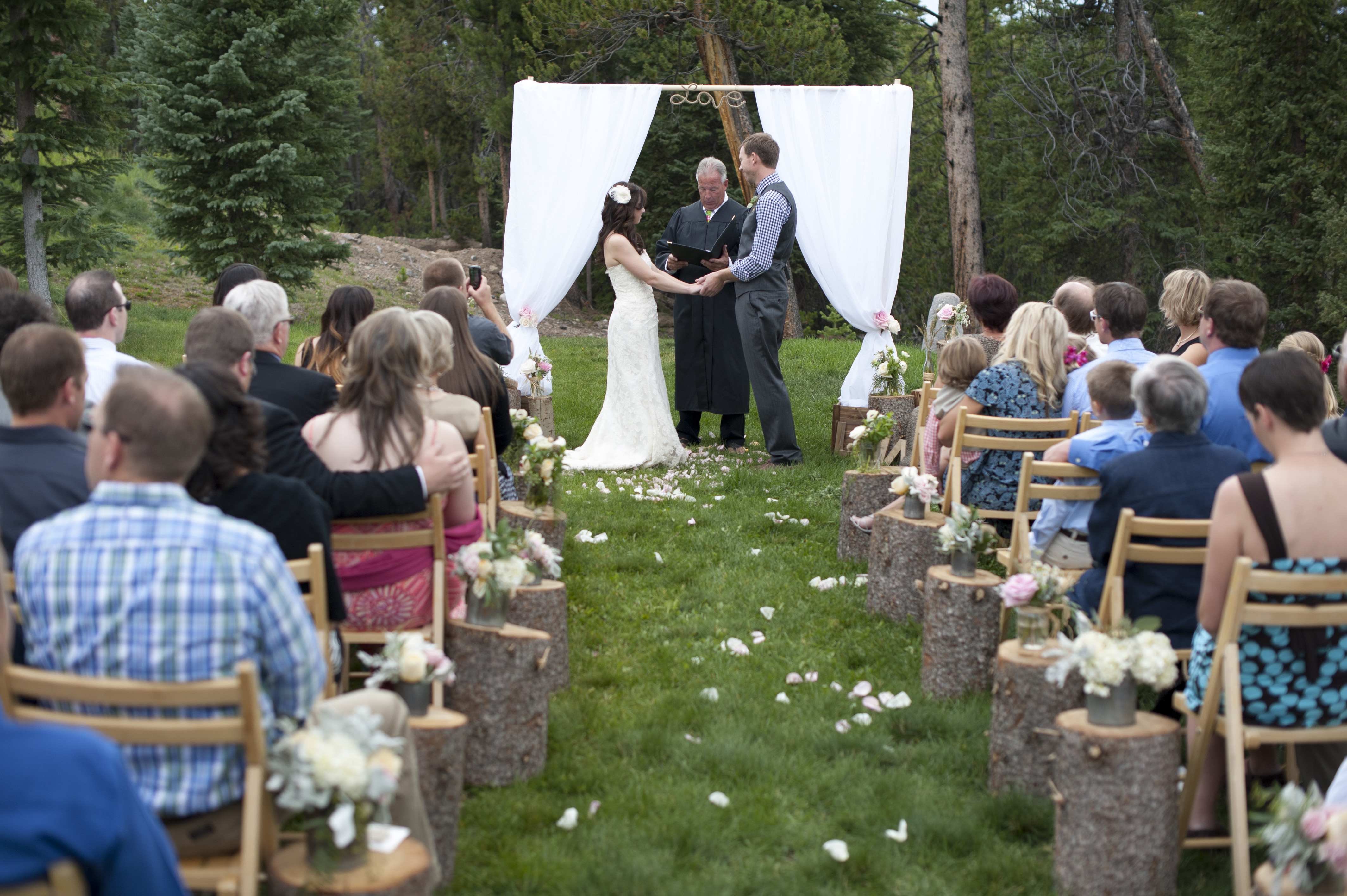 Not only had we chosen to write our own vows, but we also chose to craft our own ceremony as well. Our wedding planner, through her network of contacts, had helped us find an officiant in Colorado that was willing to travel to our wedding in the woods and mountains of Breckenridge and willing to help us write our ceremony just the way we wanted it.