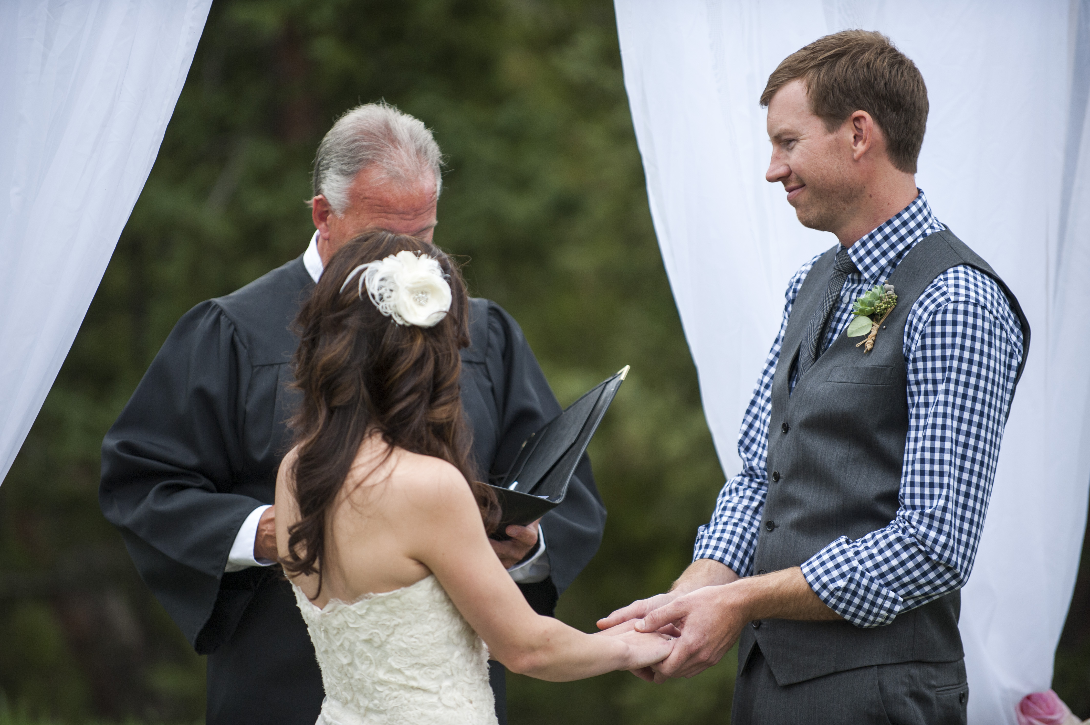 “Bryce, the covenant which you are about to make with Miranda is meant to be a beautiful and sacred expression of your love for her. As you pledge your vows to Miranda, and as you commit your life to her, we ask that you do so in all seriousness, and yet with a deep sense of joy; with the deep conviction that you are committing yourselves to a dynamic growing relationship of trust, mutual support, and caring love. Do you accept this charge as I have offered it to you?”