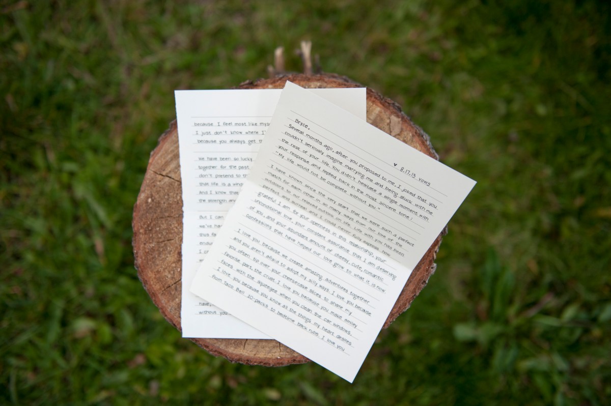 Published September 25, 2013 at 4256 × 2832 in Wedding Recaps: Our Woodland Wedding Vows ← Previous My written vows to Bryce