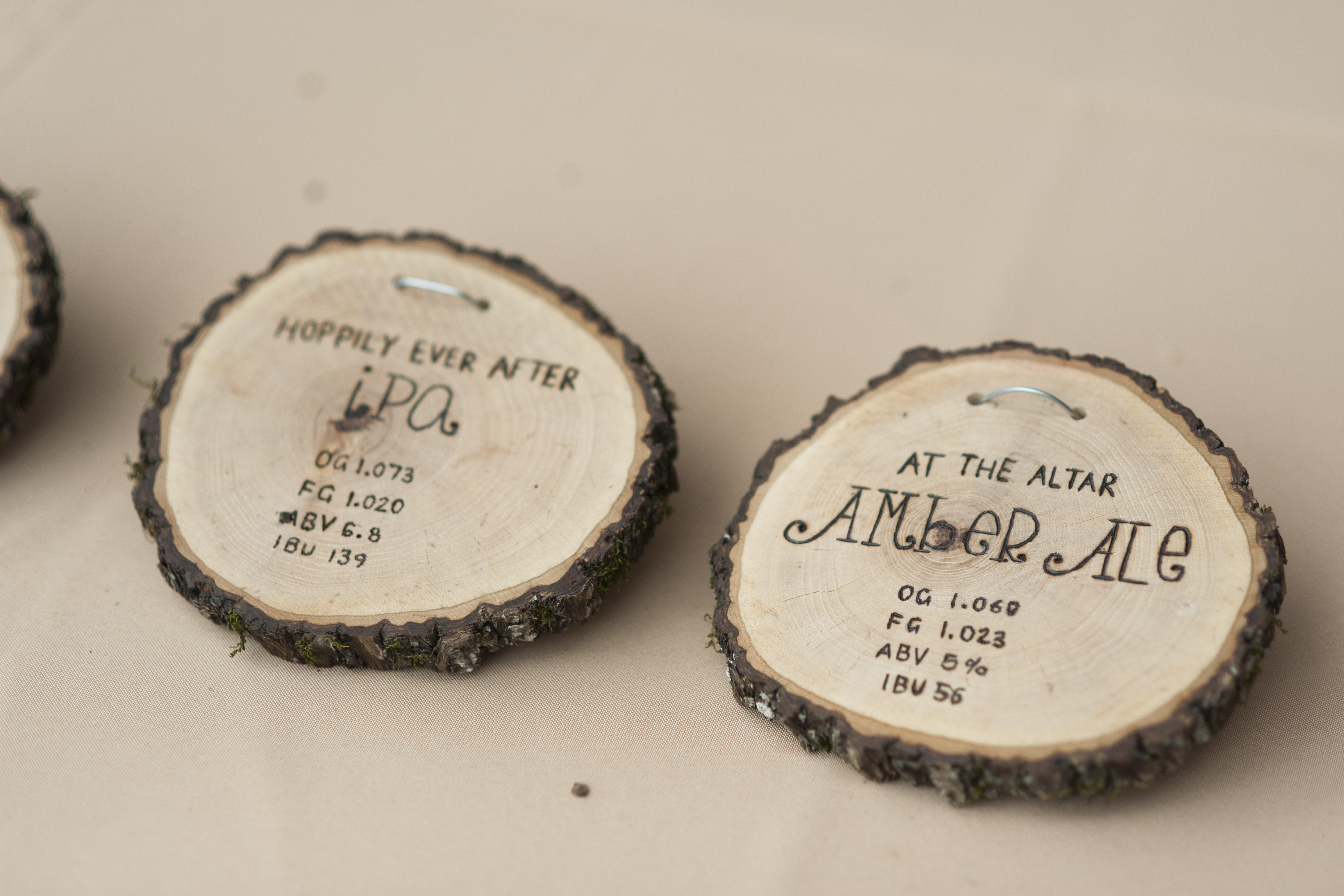 I also purchased a few round wood slices off Etsy that were not basswood and used them to create smaller items for the wedding such as our ring holder and craft beers. These were incredibly difficult to wood-burn because the wood was not smooth or soft.