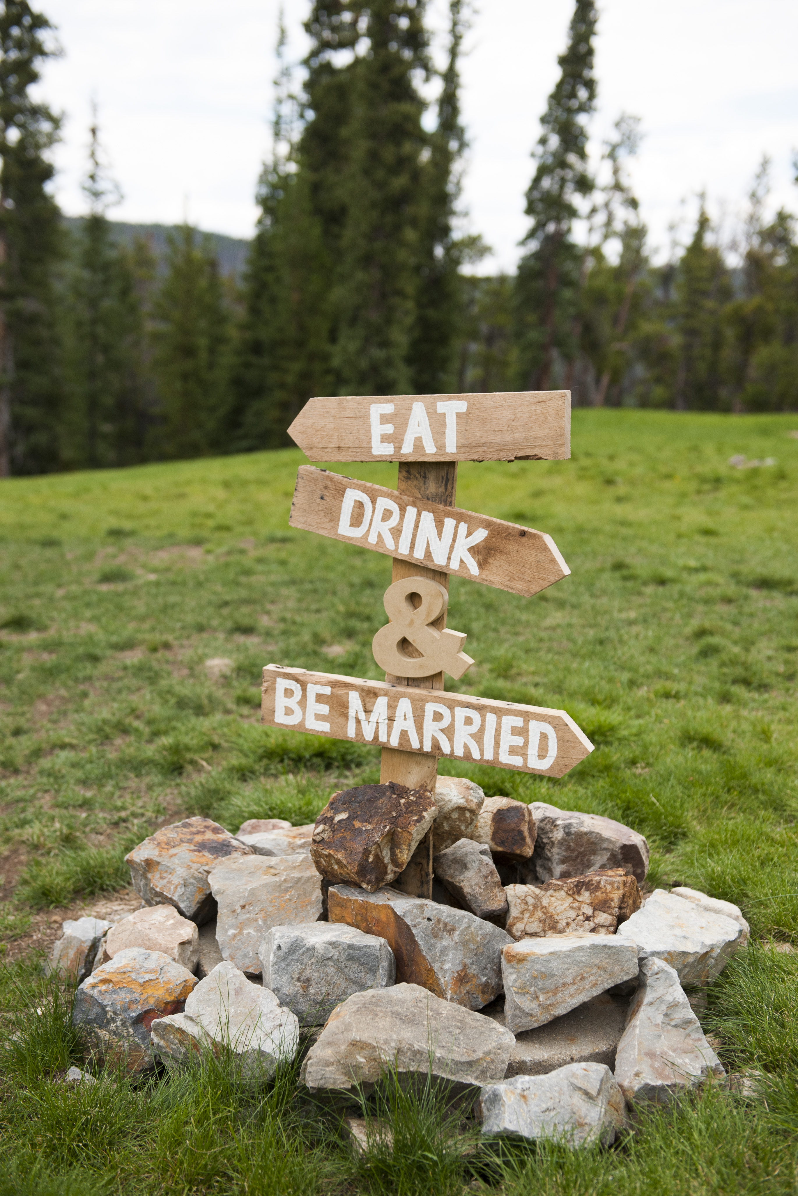 Although not entirely related to our woodsy theme, I did create two other signs for our wedding out of wood. These signs were just for fun and not a major aspect of the decor. We mainly used reclaimed wood and acrylic paint to make these signs. The wood arrow and wood ampersand used in the signs were both purchased from Etsy.