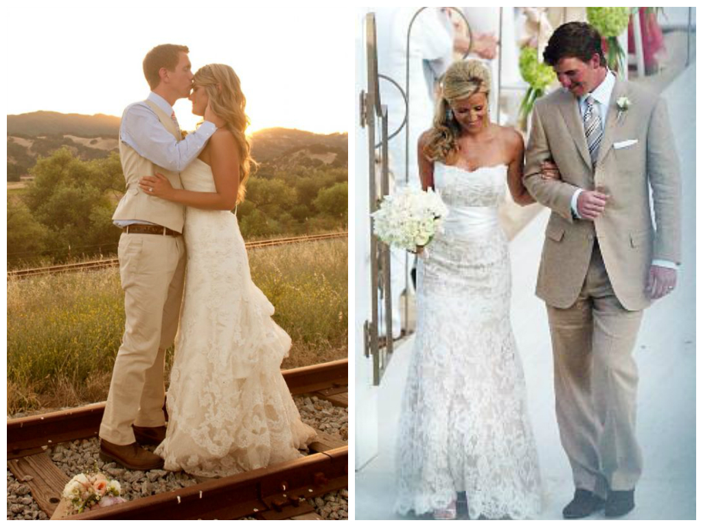 Dress Inspiration: I wanted layers, lace, and texture! One of my favorite dresses (long before I began to seriously think about wedding dresses) was this very simple lace one (pictured on the right), worn by Eli Manning’s wife, Abby McGrew.