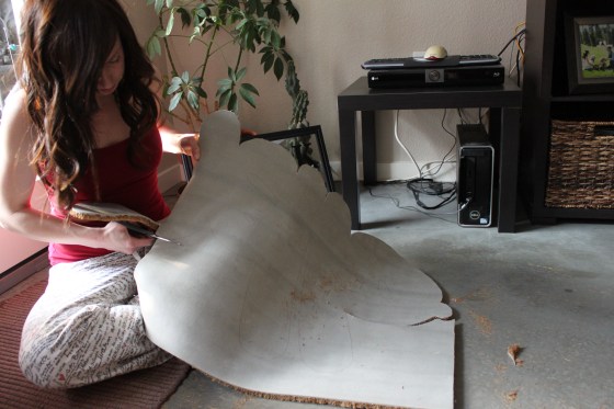 Oh, I forgot to mention, you’ll make a huge mess! If you have a wife or husband that is a clean freak, do this when they’re not around so you don’t make them nervous with the huge mess that you are creating. We have concrete floors in our apartment so it was easy for me to clean up this evidence before my hubby came home. He just got to see the pretty finished product. But I would recommend doing this outside if you have carpet.
