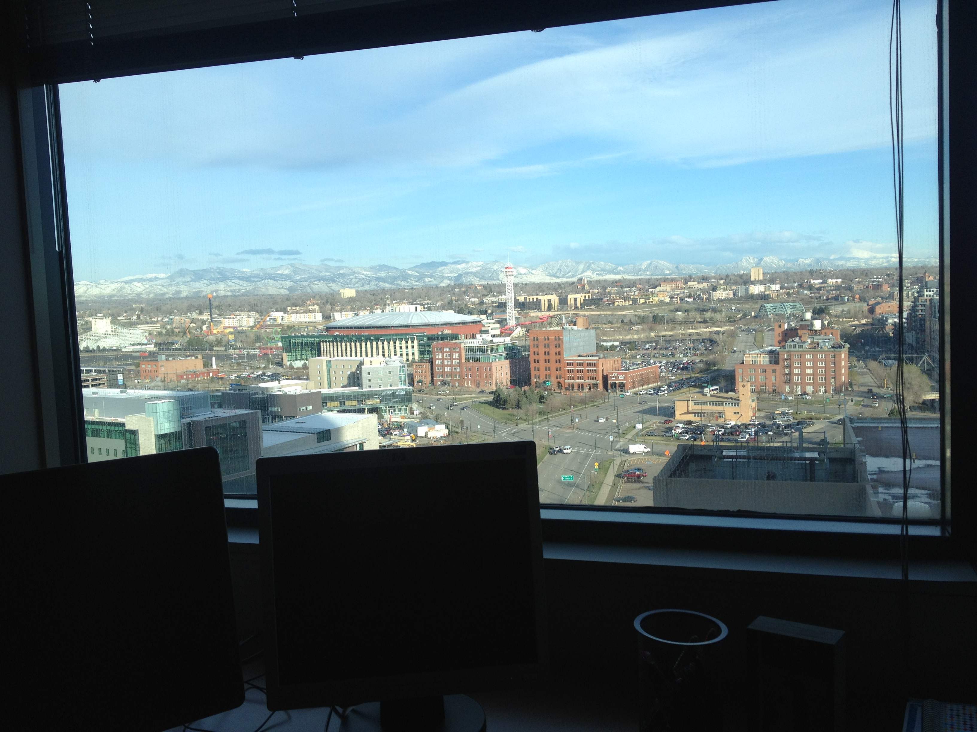 Isn’t that view incredible?! I work in downtown Denver on the 13th floor of a building and get to see the mountains of Colorado every day!