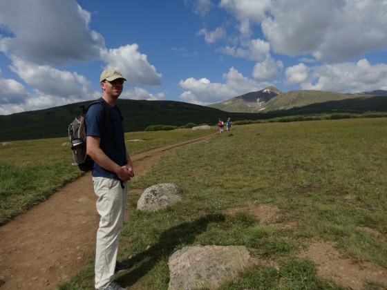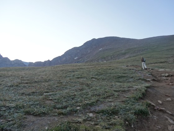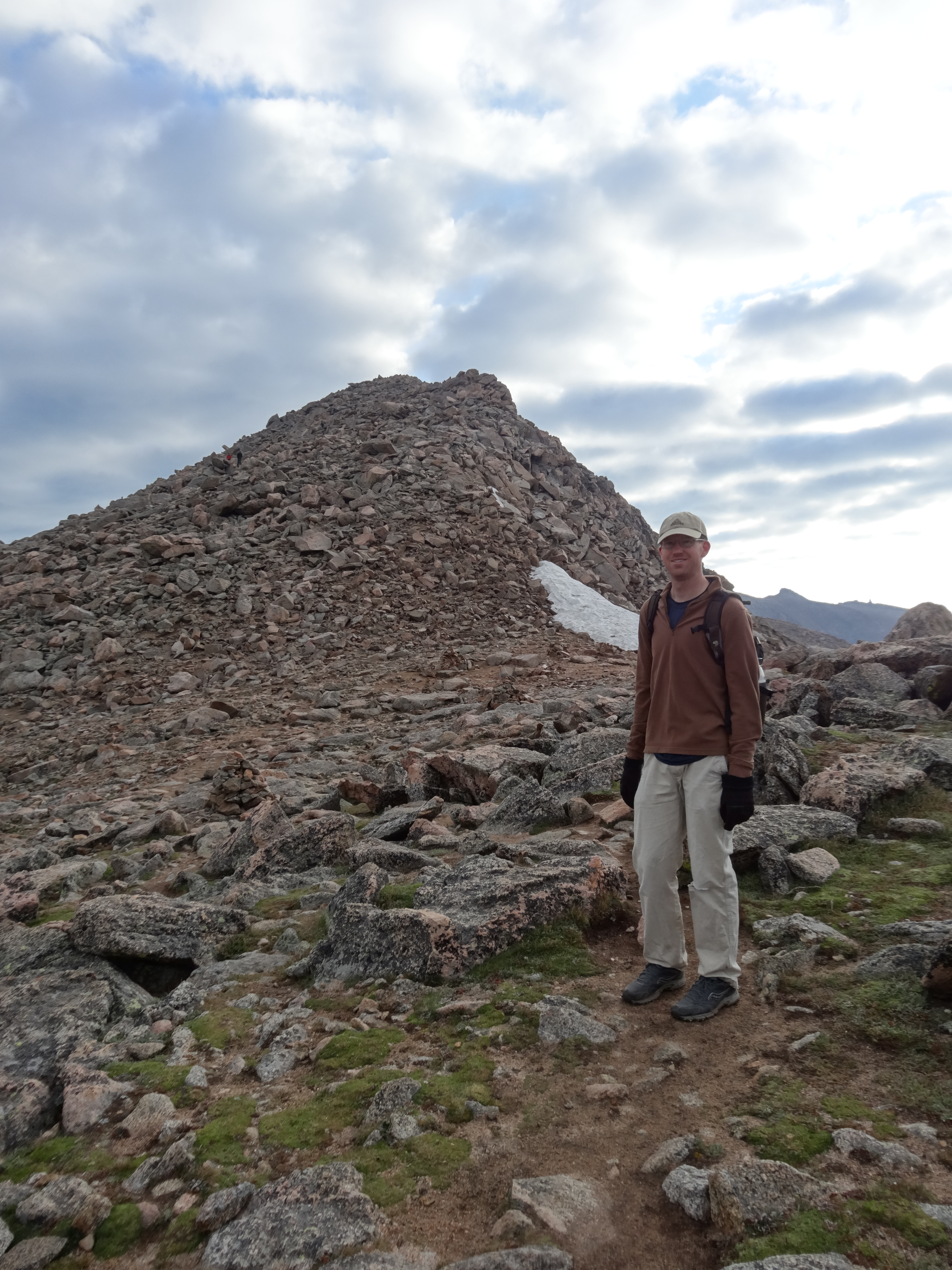 On the saddle, ready to head up the boulder field to Mount Bierstadt. The peak was much further than it looked from this angle.