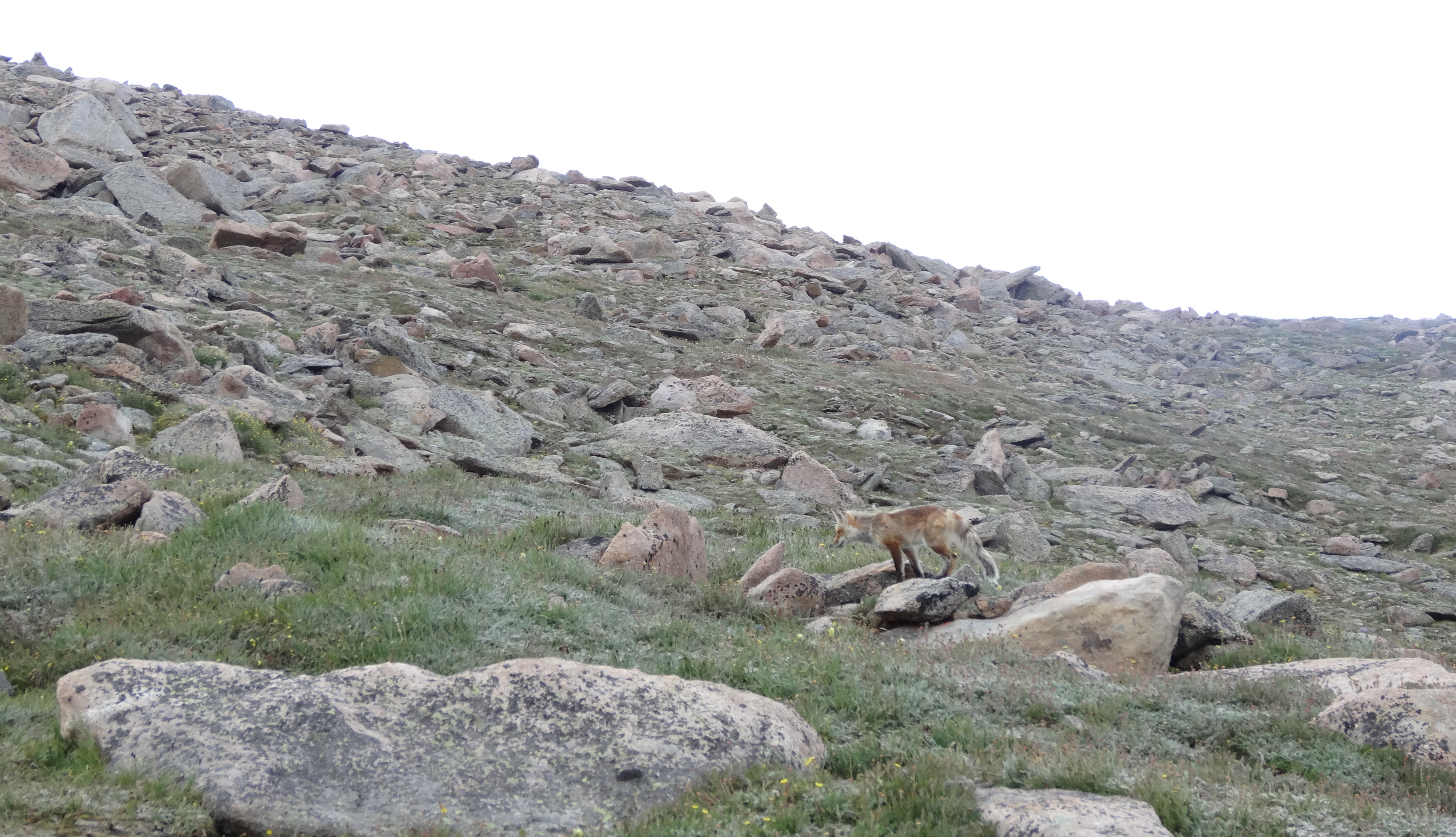Besides spotting a fox cross the trail right in front of us, the the rest of the hike up until the final stretch was very uneventful, which was a good thing! Although the hike was strenuous, it ended up being not nearly as strenuous as Grays Peak and not nearly as bad as I predicted earlier in the morning when the trail first started to get steep. This trail also did not have even half the amount of loose rock that the hike on Grays Peak had. This made our feet very happy!