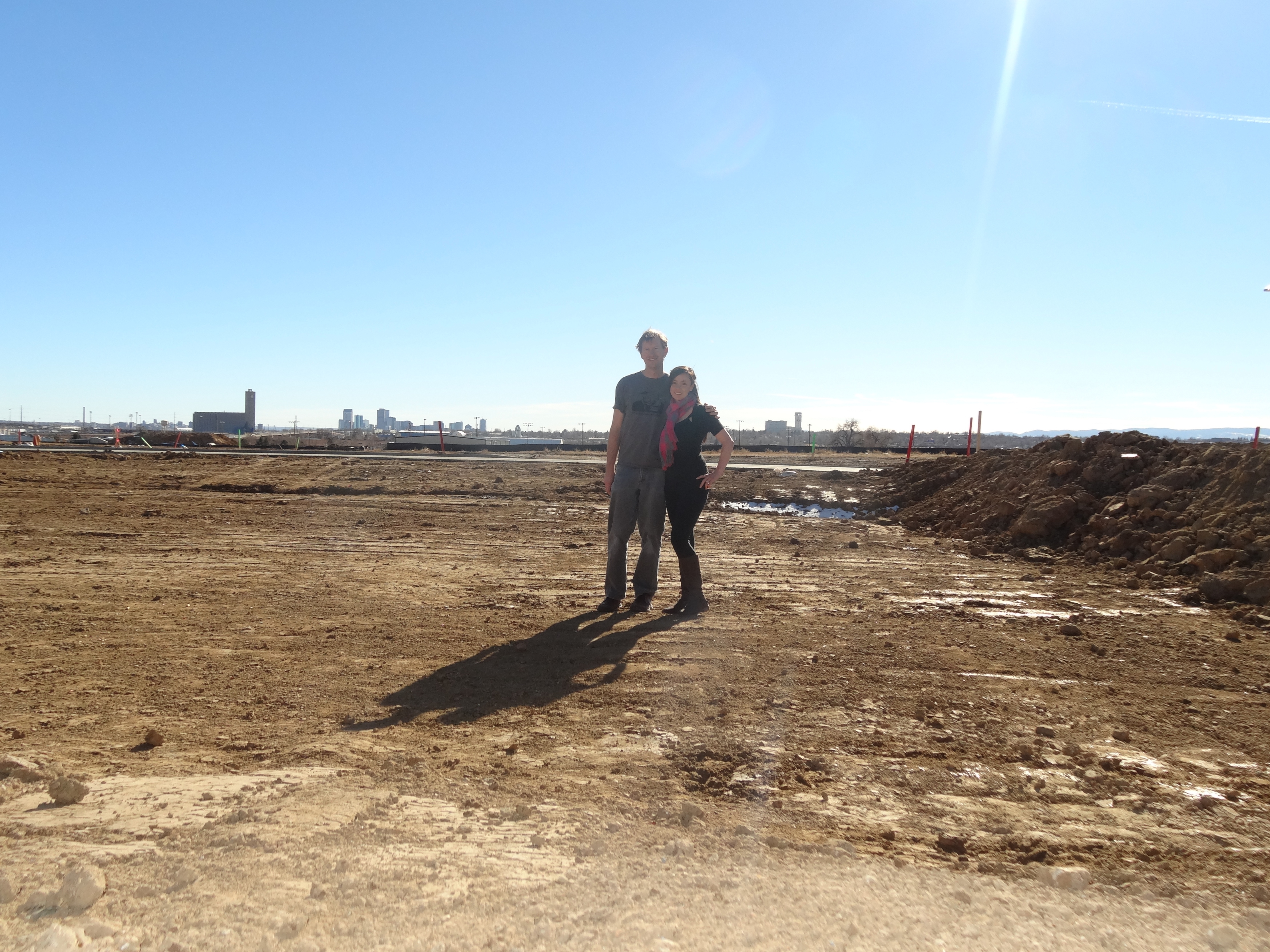 Super exciting! A ton of DIRT!!!! But more importantly, the lot we picked at Midtown. You can see downtown Denver in the far distance to the south. You can also see one of the ugly, tall buildings from an industrial facility located just south of Midtown. But whatever.