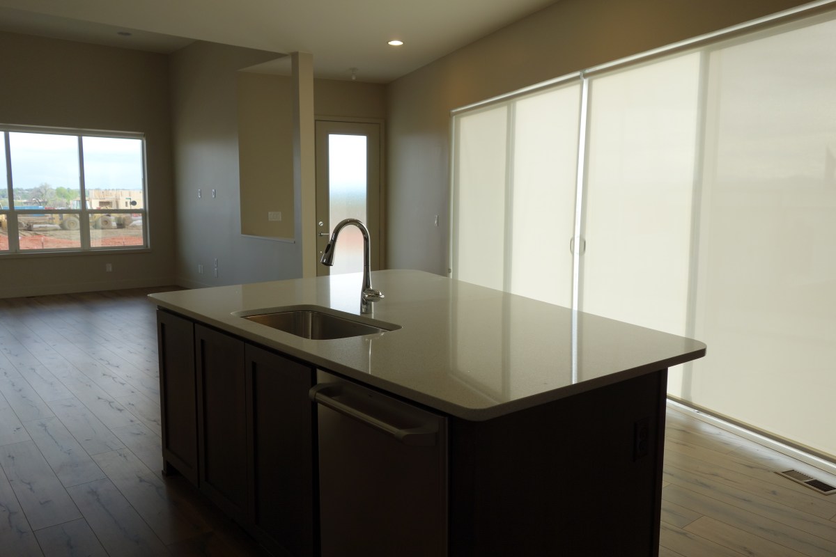 Published May 26, 2015 at 5472 × 3648 in Home Sweet [Midtown] Home ← Previous Next → The open layout of the lower floor includes the kitchen, dining room, and living room, along with a giant slider glass door for lots of light