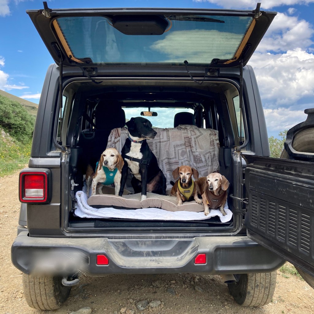 Just because we couldn’t camp with four dogs didn’t mean we couldn’t have an adventure though! What dog doesn’t like playing co-pilot and hanging their head out the car window to get some fresh mountain air!? We wrangled up the 16-paw crew in our Wrangler and hit the road for a 4WD day-adventure!