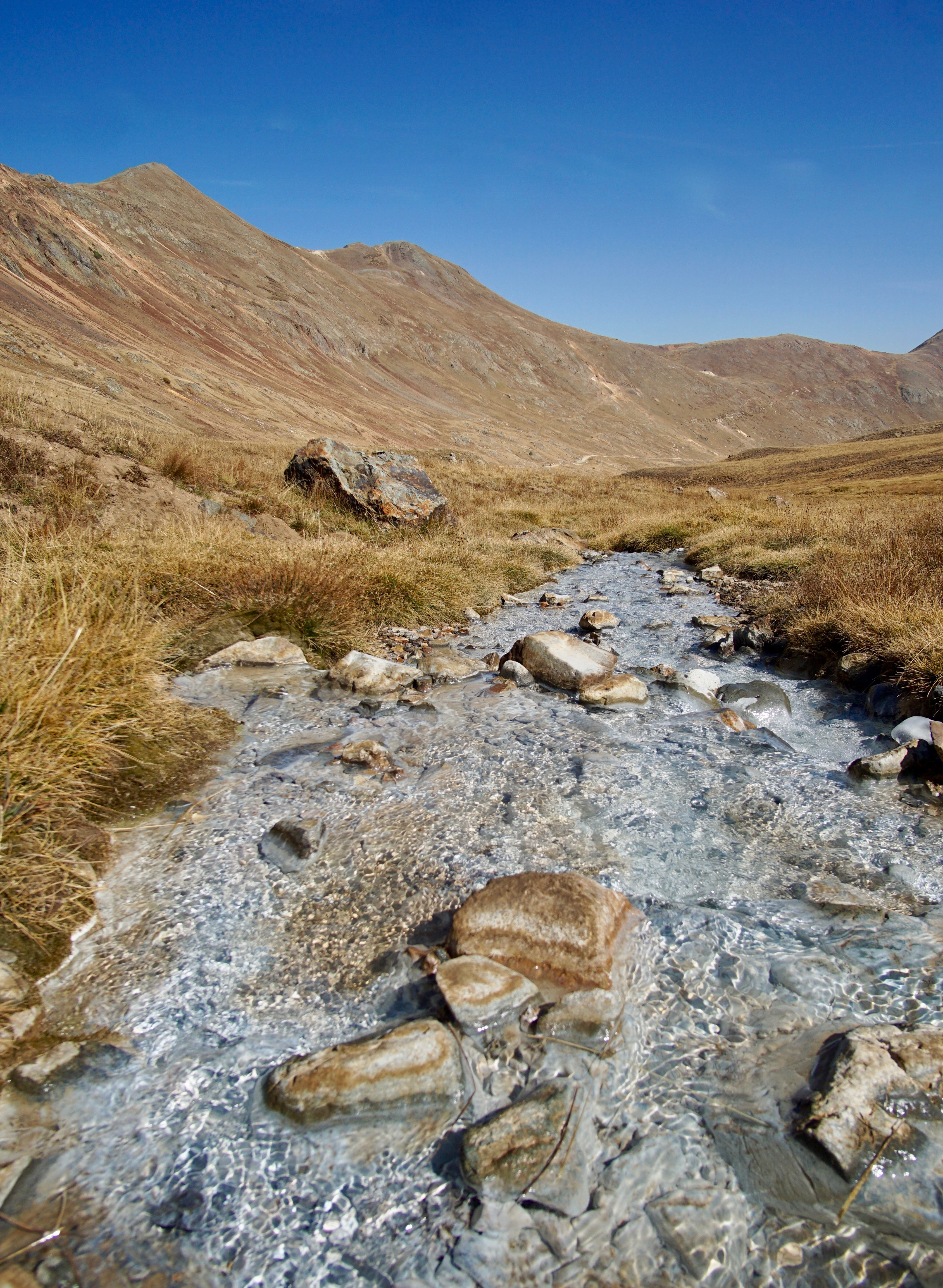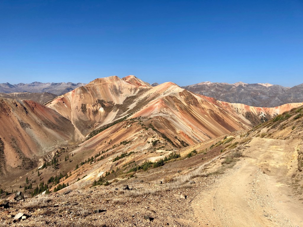 As you can see, there were more golden leaves on the ground than there were on the trees, but despite missing peak fall color outside Ouray, we made up for it by enjoying colorful mountain views driving up Corkscrew Pass and Hurricane Pass (both 4WD roads). We stayed outside Ouray on Corkscrew Pass for one night and packed up camped without knowing where we would stay our second night.