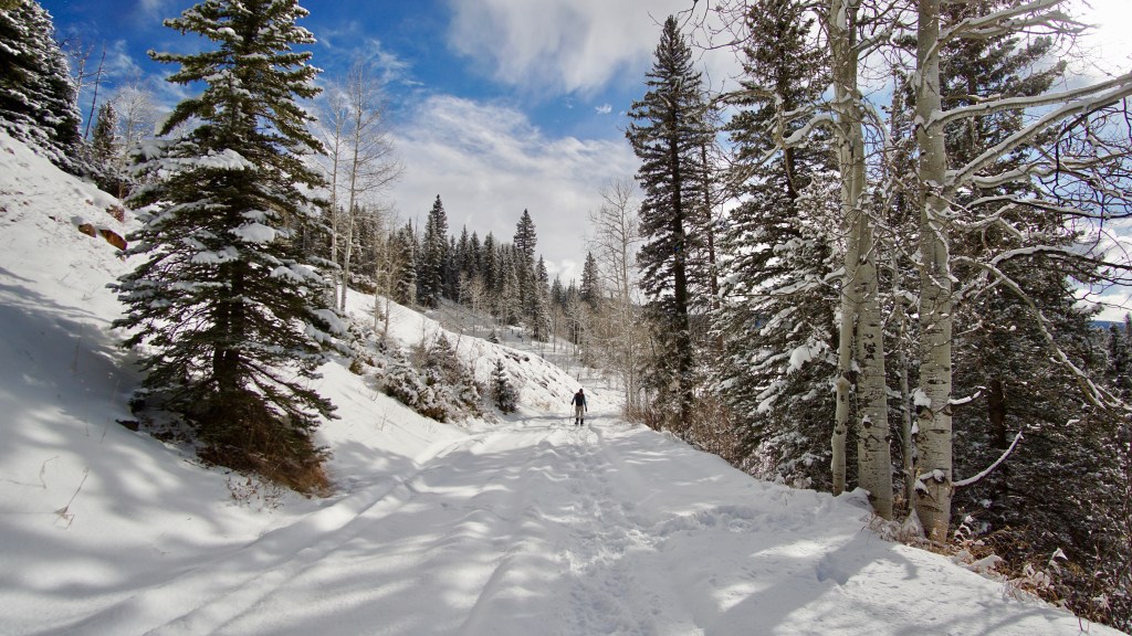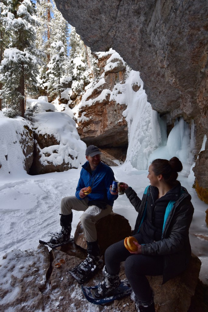 For my birthday this past year, I had my heart set on re-visiting a particular hike we had done in the summer near Durango that had tons of waterfalls that were surely a must-see in the wintertime. This hike is already a 12-mile commitment in the summer and we knew the winter commitment was going to be quite a bit more due to snow covering the long road leading up to the trailhead; we just didn’t know how much more. I was fully up for the challenge of a long, hike in the snow, while also realizing that we might easily get turned around due to deep snow.