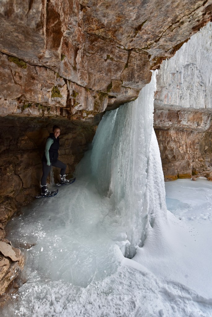 There were still other worries on my mind to take over though. The brief water dunk I took earlier during our hike had become a huge concern as the temperatures dropped and the moisture spread further inside my boots. As much as I tried wiggling my toes to keep the circulation going, it felt like a battle I might lose. There was nothing I could do about the situation and I couldn’t help but think that the pain and numbness from my freezing toes was far worse than any exhaustion I felt in my legs. Eventually though, when we reached the first waterfall again, my feet finally began to unthaw, since we were back in highly-trafficked terrain and less deep snow. It was the biggest relief, both mentally and physically!