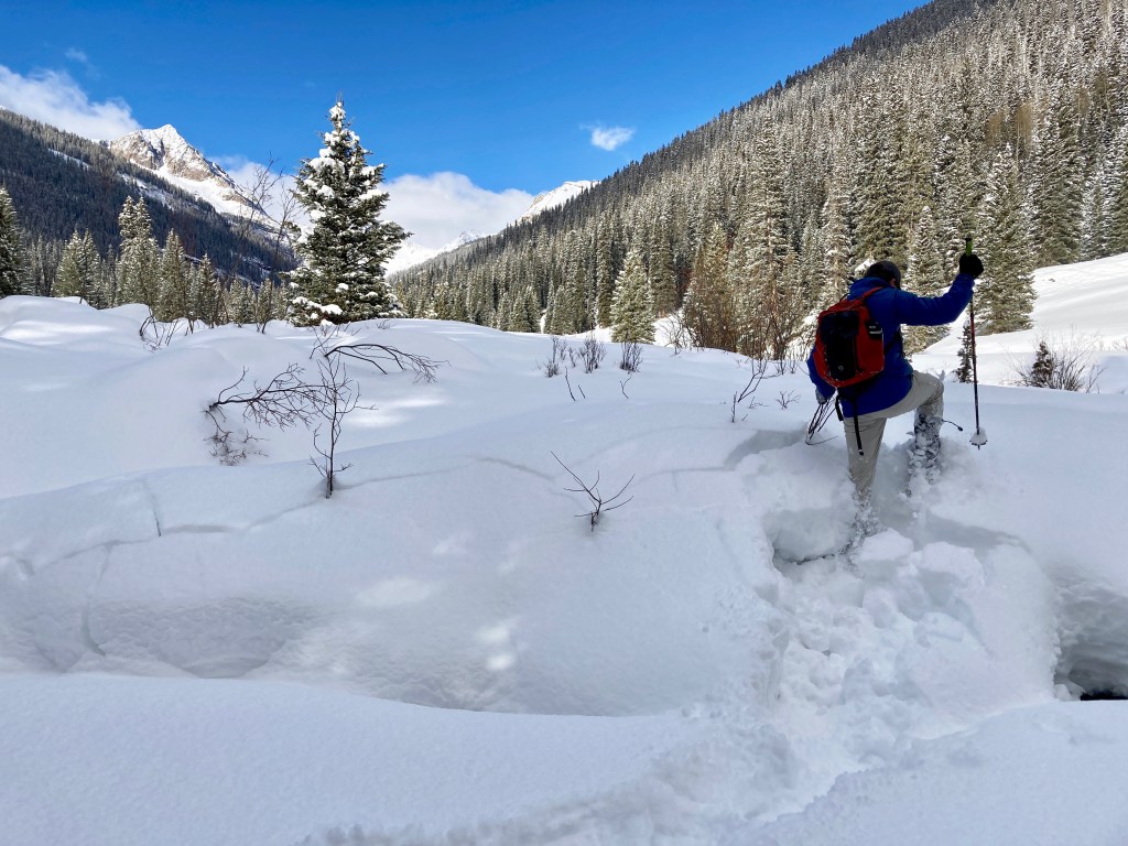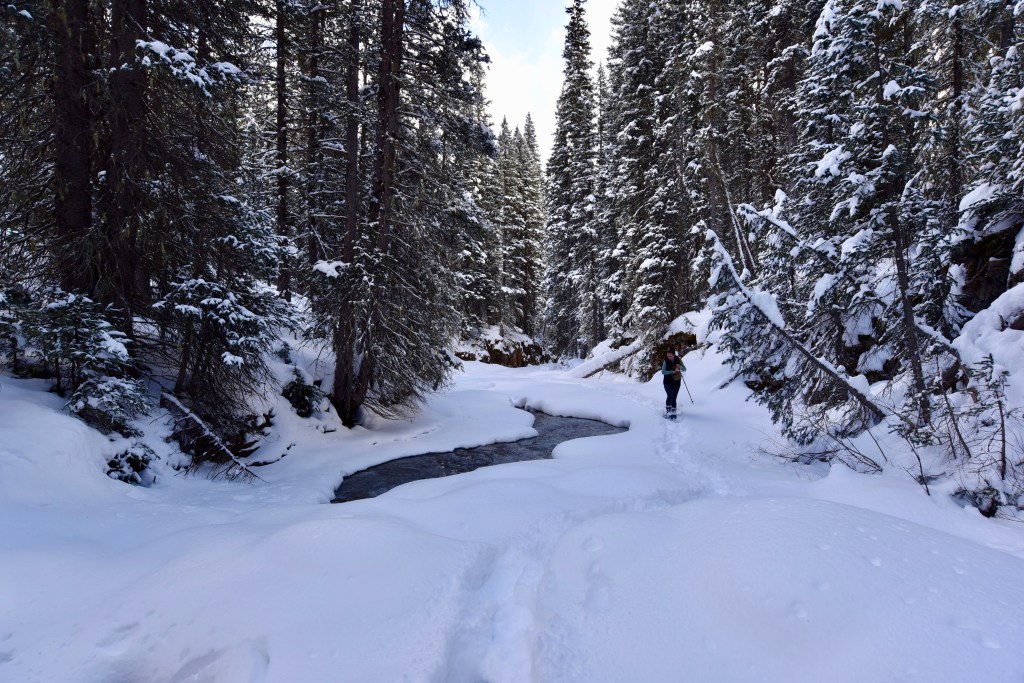 As if that situation wasn’t enough of a hurdle to surpass, the trail ended crossing the same stream we had come from and in a messy attempt to get across the tall mounds of snow, I ended up sinking my feet in the water underneath when the weakened snow gave way from our weight. This didn’t seem like a big deal at first, but later turned out to be one of most scary ordeals of potential frostbite.