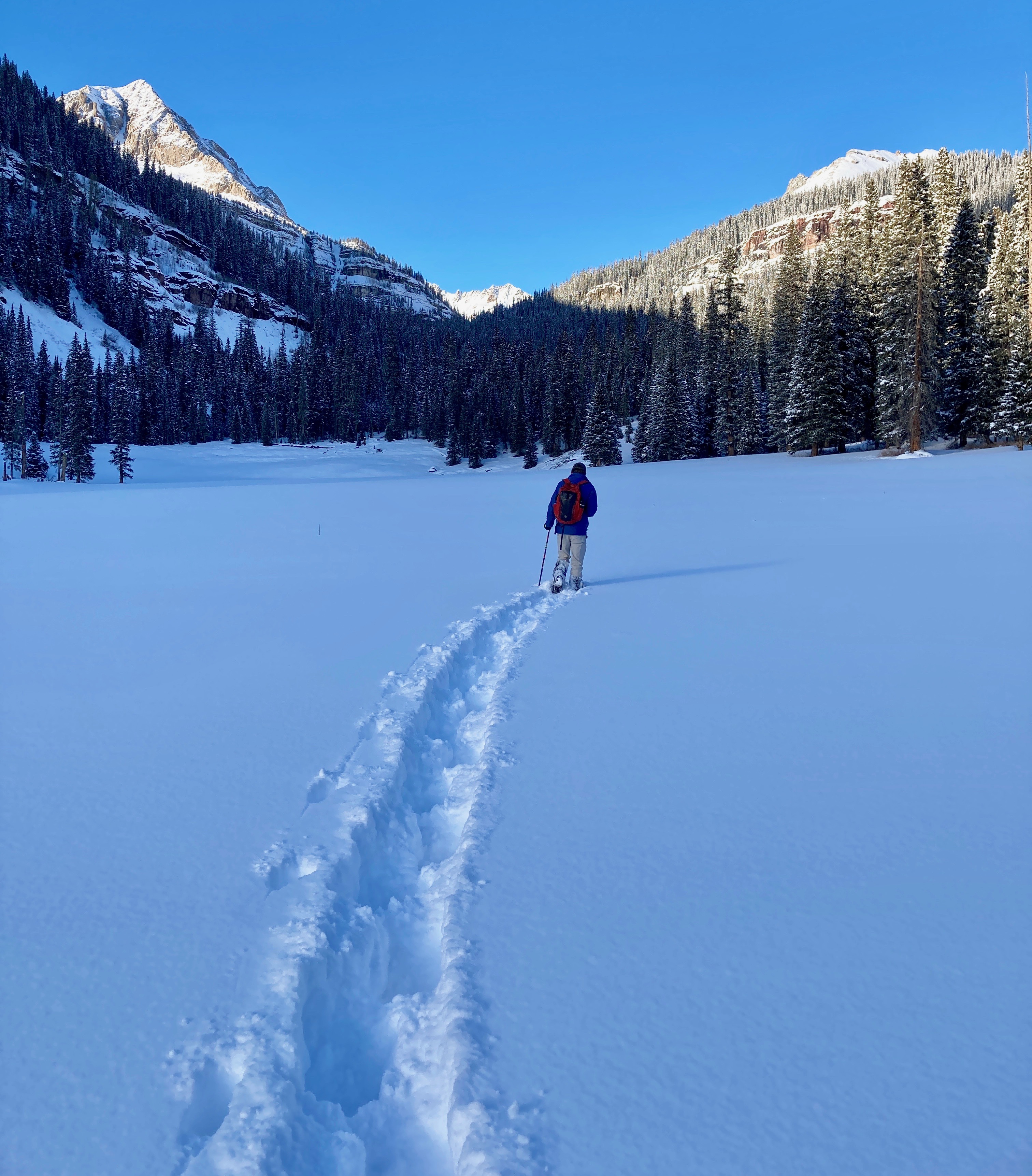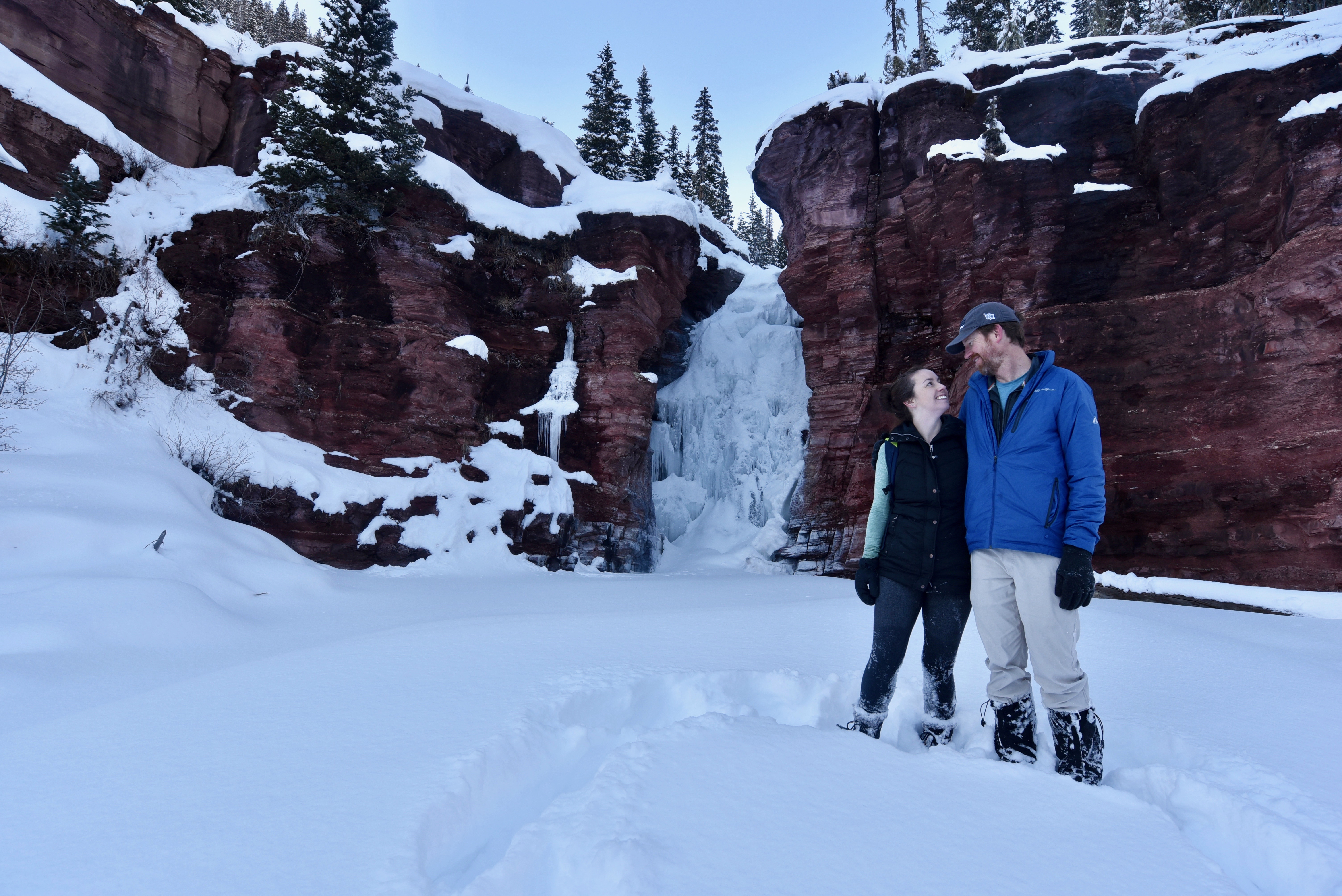 For my birthday this past year, I had my heart set on re-visiting a particular hike we had done in the summer near Durango that had tons of waterfalls that were surely a must-see in the wintertime. This hike is already a 12-mile commitment in the summer and we knew the winter commitment was going to be quite a bit more due to snow covering the long road leading up to the trailhead; we just didn’t know how much more. I was fully up for the challenge of a long, hike in the snow, while also realizing that we might easily get turned around due to deep snow.
