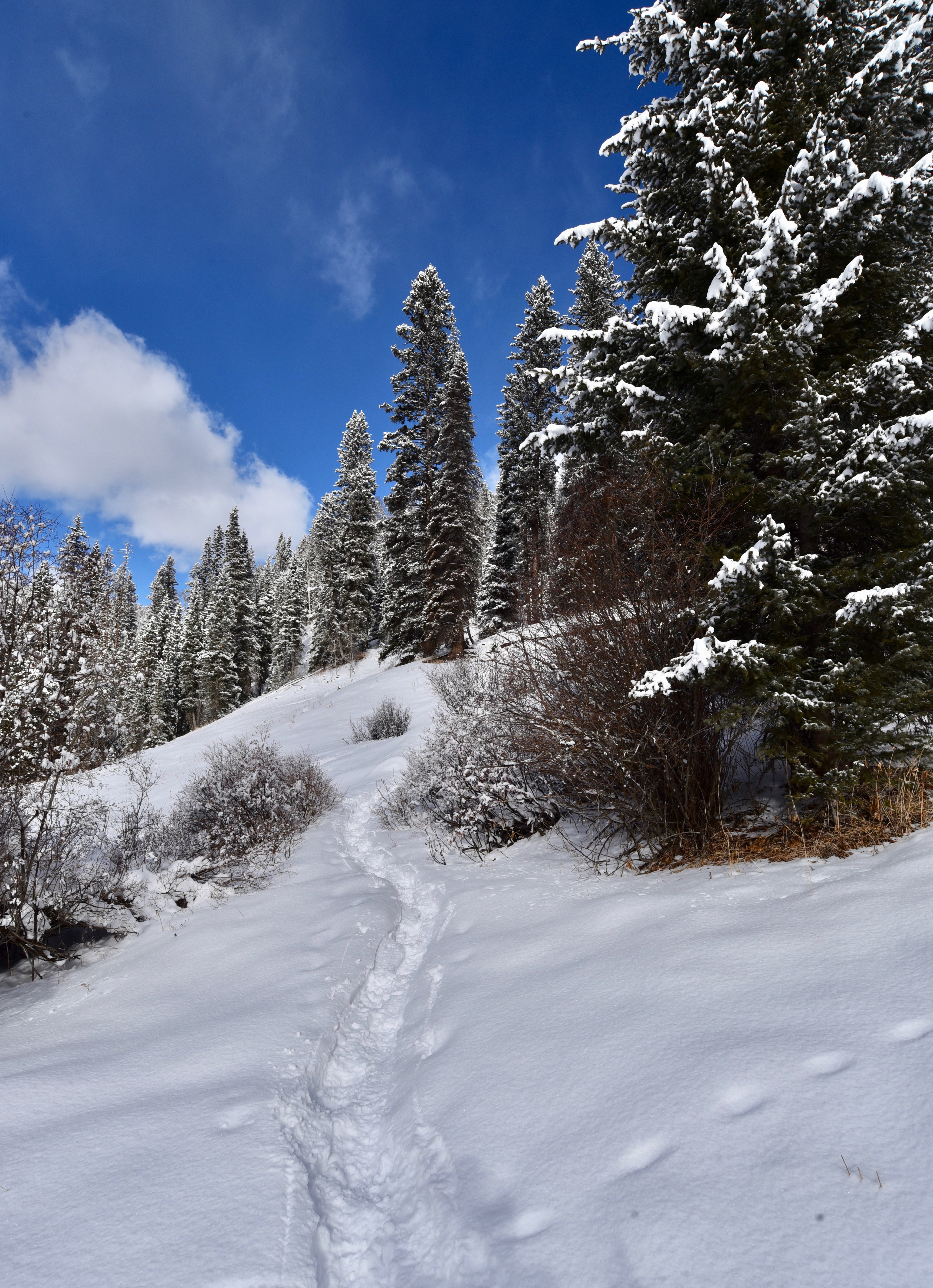 We started our hike at 9:30am, which felt like a commendable, early start. There were a few cars already parked when we arrived for our hike, which made us feel like we were not such early birds after all. However, as it turned out, the cars were there for a different hike in the area and we were the first to set foot on the hike we had planned, as evidenced by the untouched snow on the trail ahead of us.