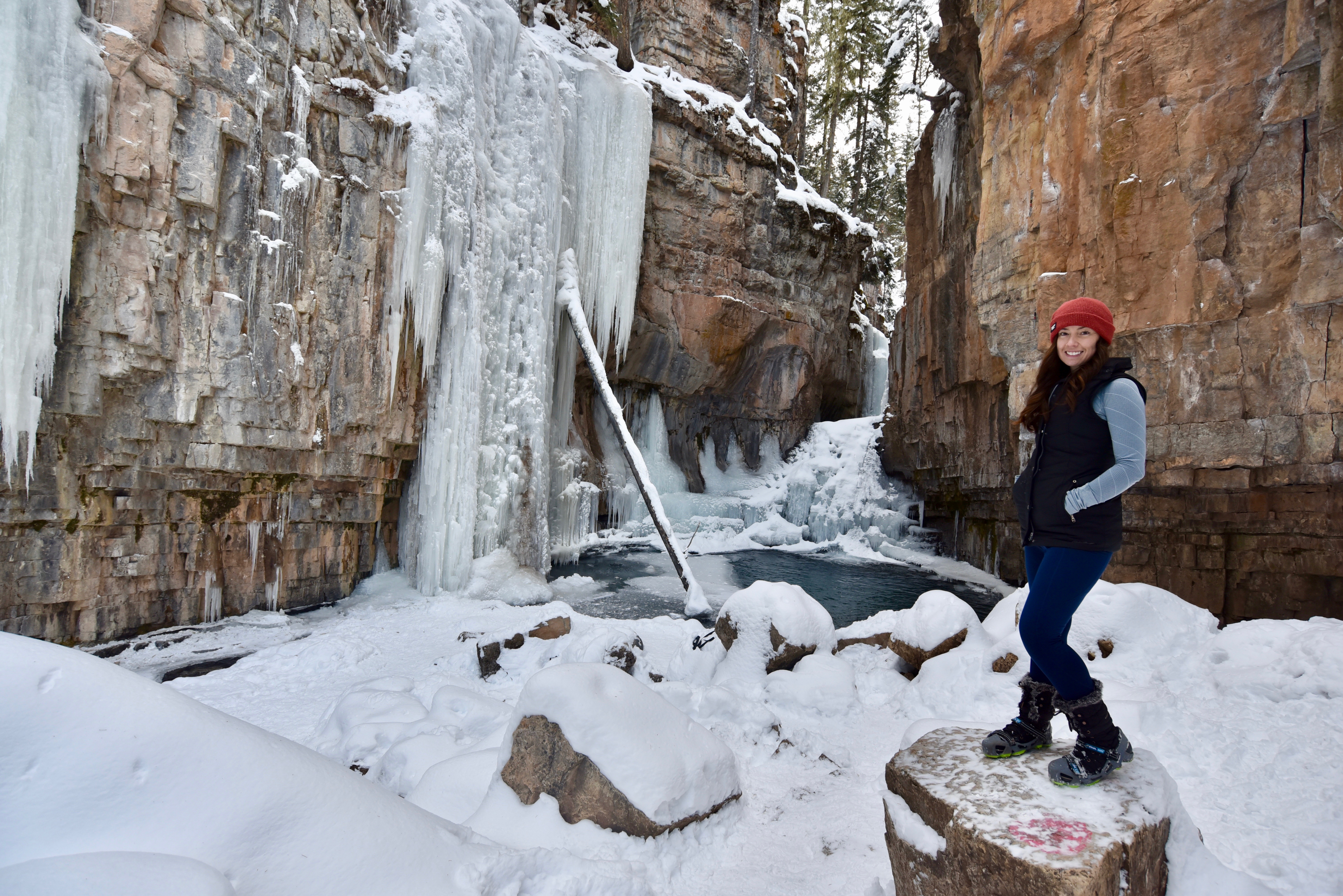 There were still other worries on my mind to take over though. The brief water dunk I took earlier during our hike had become a huge concern as the temperatures dropped and the moisture spread further inside my boots. As much as I tried wiggling my toes to keep the circulation going, it felt like a battle I might lose. There was nothing I could do about the situation and I couldn’t help but think that the pain and numbness from my freezing toes was far worse than any exhaustion I felt in my legs. Eventually though, when we reached the first waterfall again, my feet finally began to unthaw, since we were back in highly-trafficked terrain and less deep snow. It was the biggest relief, both mentally and physically!