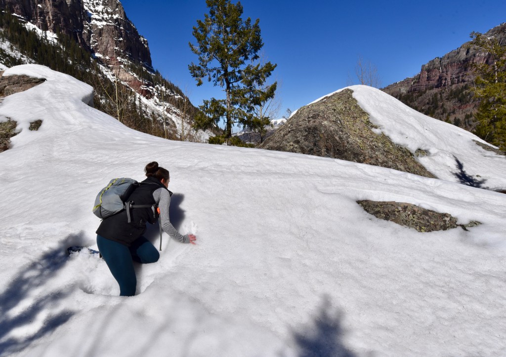 On the next full day of our trip, we started off the morning with a visit to lower Bridal Veil Falls, a trail that was actually new to Telluride in 2020. We had visited two waterfalls on this trail in the summer of 2020 and we were eager to see what the waterfalls looked like in the Spring when they were possibly partially frozen.