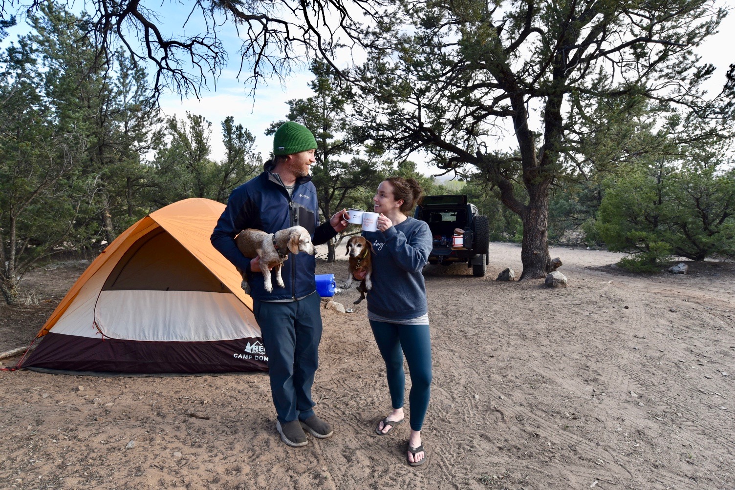 Less than a month after that, when the weather in New Mexico started to thaw, we went camping on our own (with our three dogs in tow) for the first time by ourselves. And now, over ten years later, we have logged 73 camping trips together!