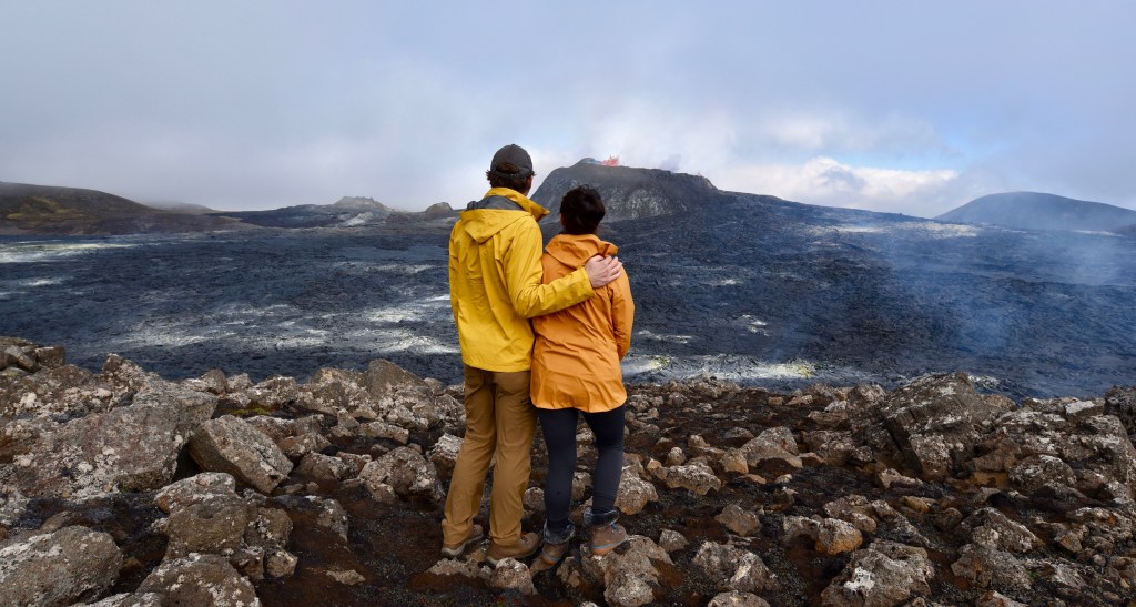 On the other hand, not only was Iceland one of the few countries to welcome back vaccinated tourists at the time, it had an irresistible attraction, an active volcano! The volcano had awoken in mid-March and early photos and videos showed local residents sitting on a hillside watching a bright orange river of lava flow quietly from a fissure mere yards from where they were sitting. How. Freaking. Cool!!!!
