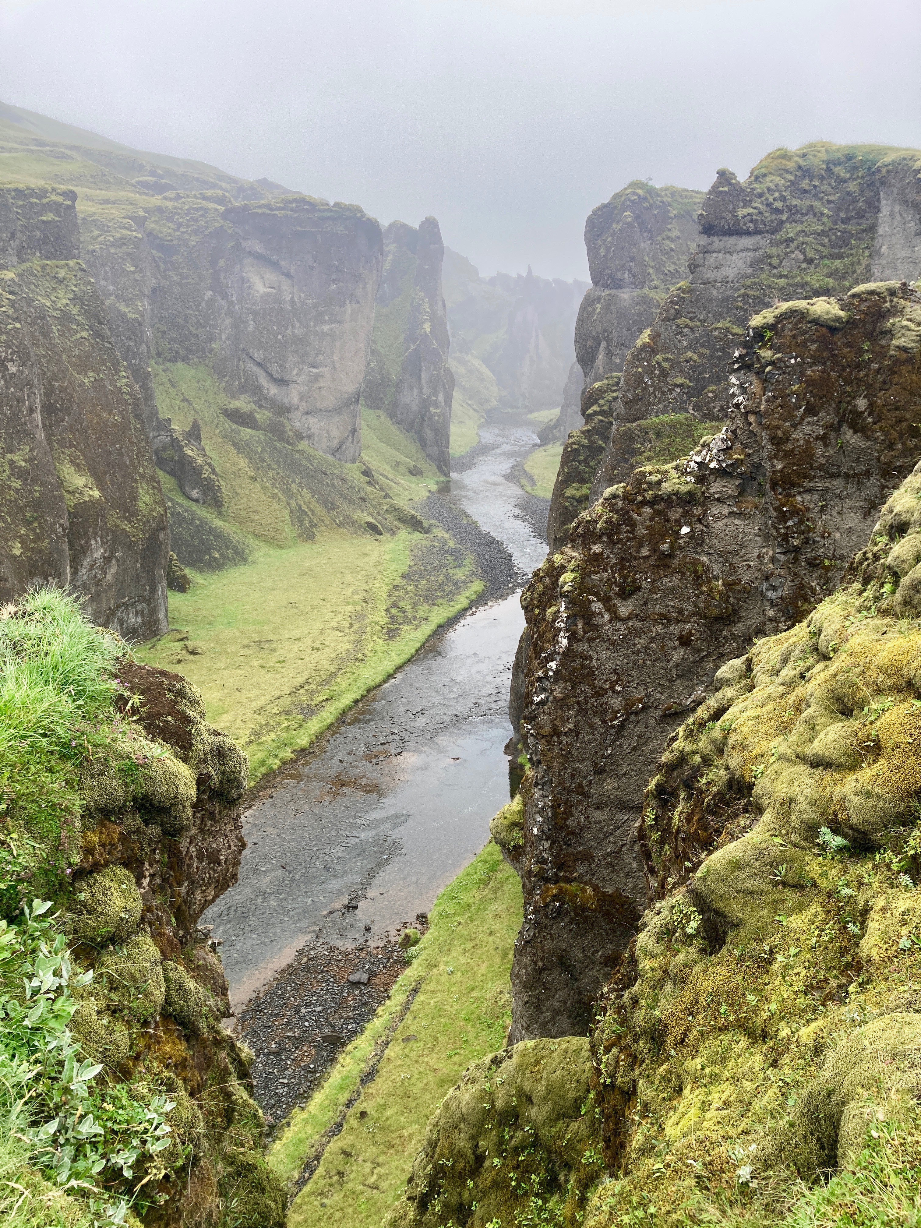 Our next Ring Road stop was a famous one found in many photos of Iceland’s south coast. Fjaðrárgljúfur is a picturesque canyon with a river winding through the bottom of its massively tall walls.