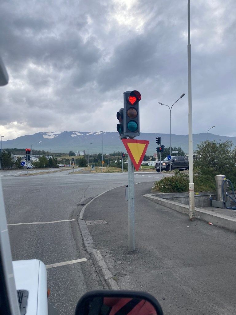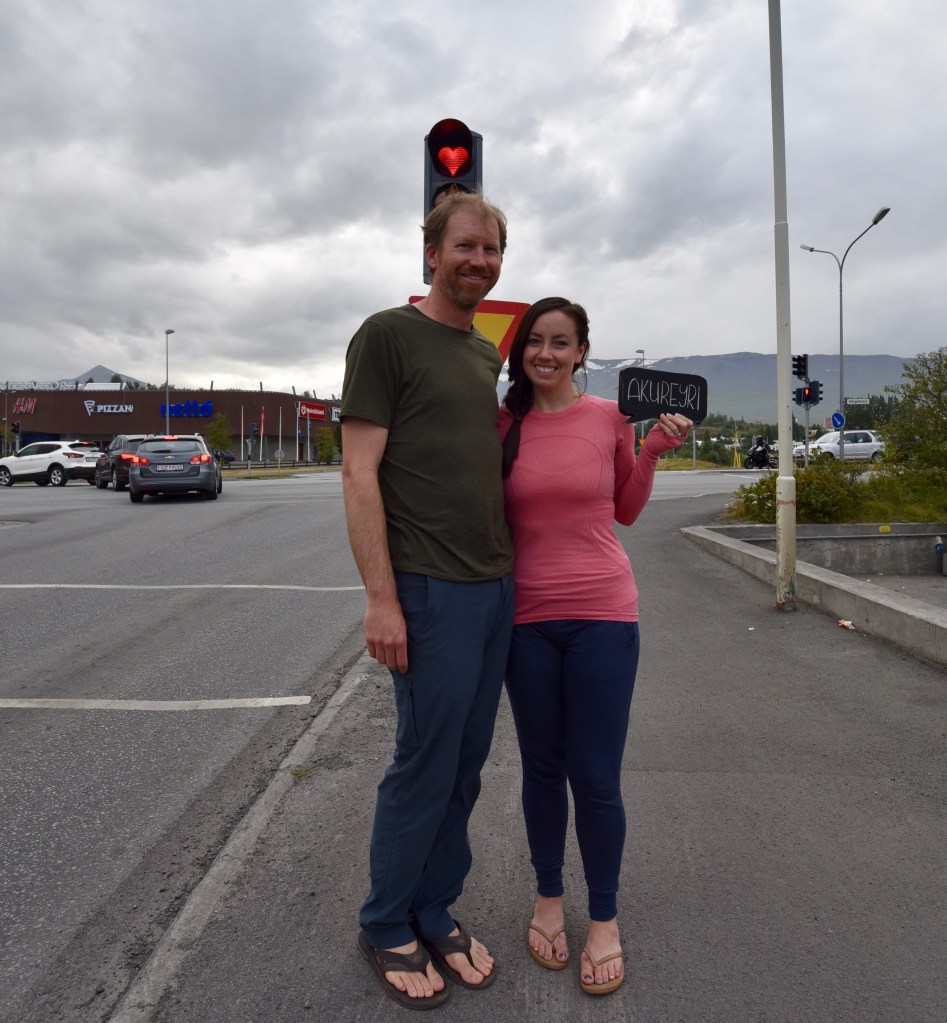 Akureyi is the second largest city in Iceland, but even after being in remote places for the last several days, we couldn’t think of any reason we needed to spend time in the city besides seeing Akureyi’s famous heart-shaped traffic lights.