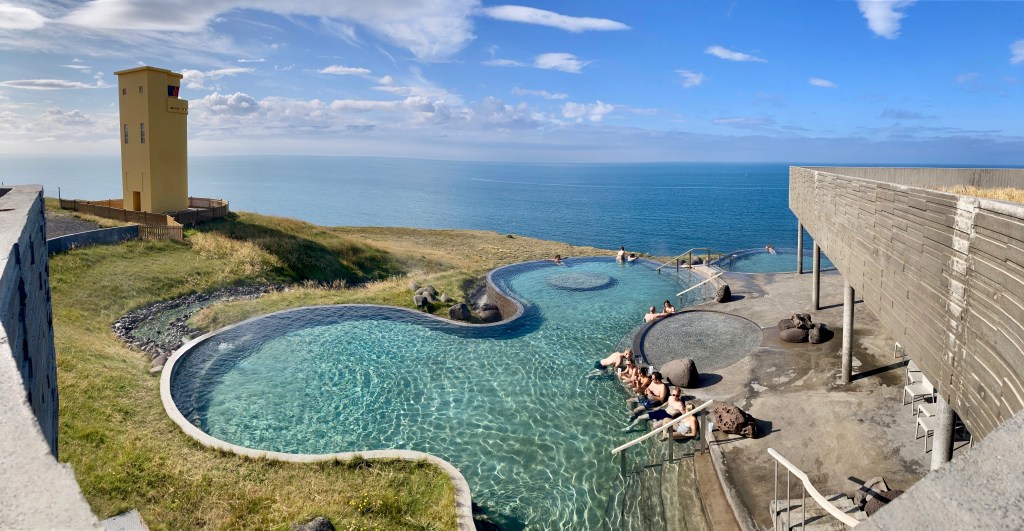 On the way to Drangeyjarferðir, we had time to spare at a seaside geothermal spa called Geosea that had a walk-up bar and an awesome cloud-topped mountain view in the very far distance. Hubby likes to jokingly complain that I pack too many sights and activities into our vacations, but now there is proof that I don’t always do that, and sometimes I even make time for a relaxing spa and day-drinking!