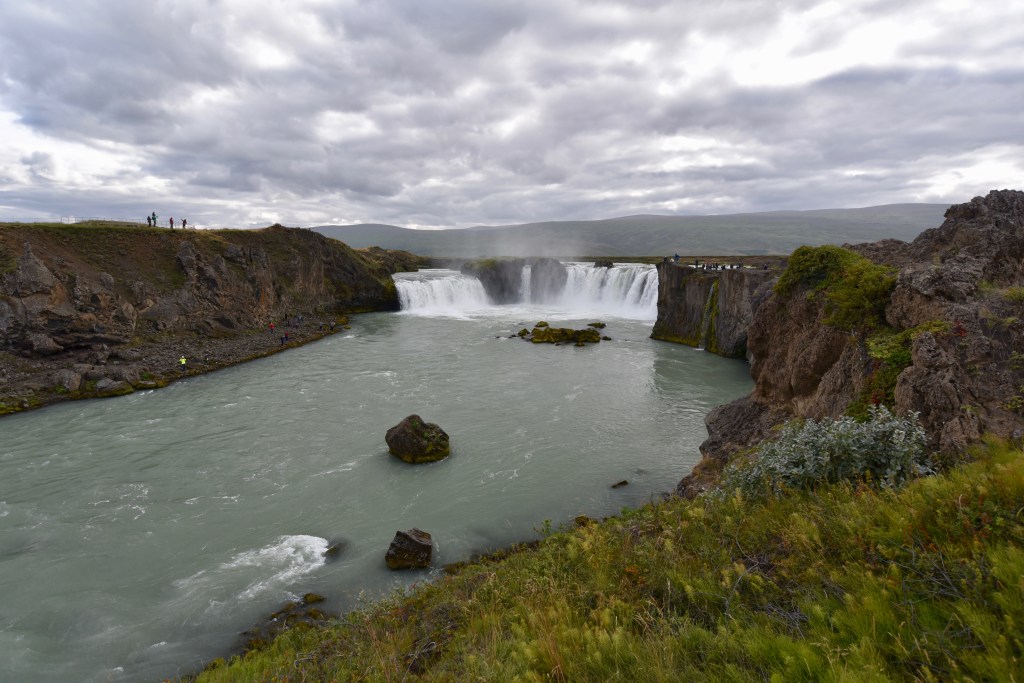 On our way to our next big stop, the town of Akureyi, we made a quick stop at a very crowded and popular waterfall, Goðafoss. I had been excited about Goðafoss because several photos showed it with impressive teal blue waters below, but at the time we visited, the water was a milky green at best and we were not impressed. We snapped an obligatory photo and left quickly to Akureyi, an hour away.